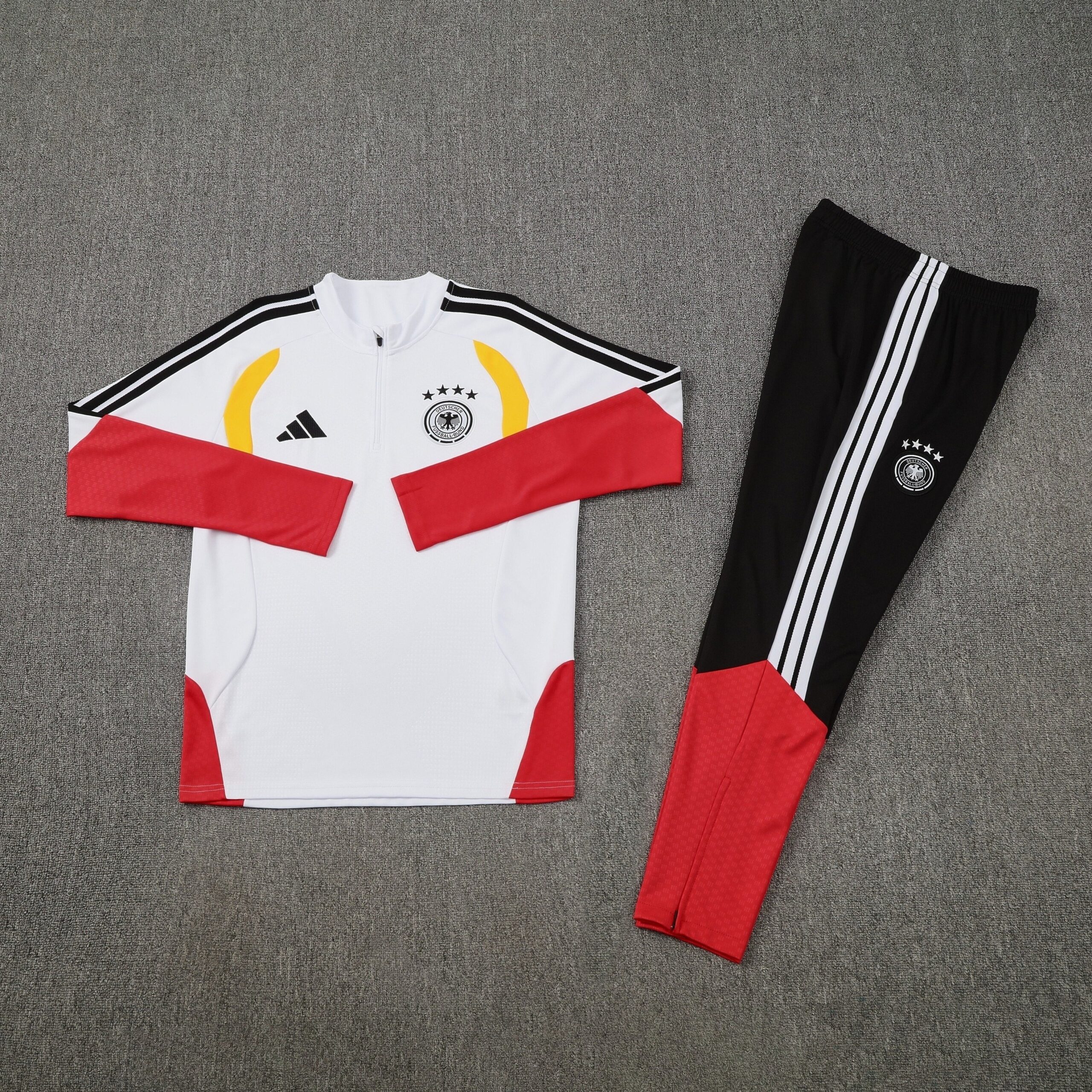El chándal Alemania 26-27 es suave, cómoda y transmite una sensación agradable al contacto con la piel. Ha sido confeccionada con materiales de gran calidad y cuidando cada detalle para que sientas los colores de tu equipo.